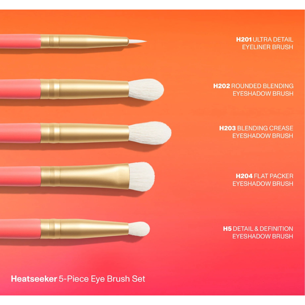 Descubra todos os itens essenciais para os olhos com o conjunto de pincéis para olhos de 5 peças Heatseeker da Morphe, uma curadoria de cinco ferramentas fofas e precisas para aplicação fácil de sombra e delineador. Apresentado em uma bolsa de escova de edição limitada para facilidade de uso em qualquer lugar e armazenamento em casa.